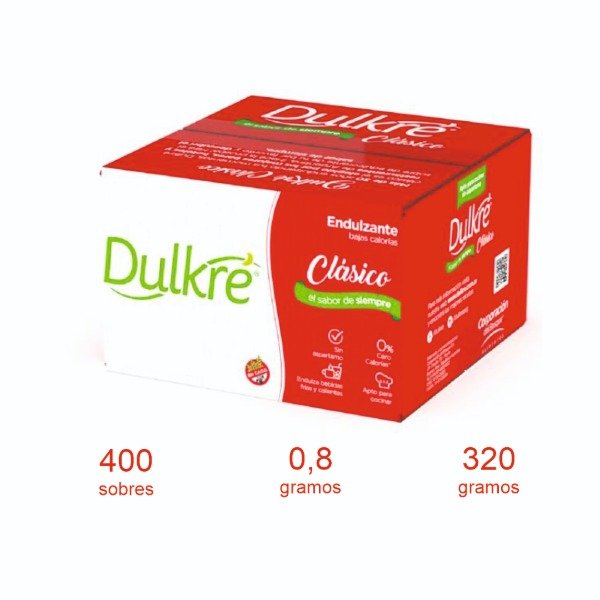Edulcorante en sobres individuales Dulkré x 400 sobres.