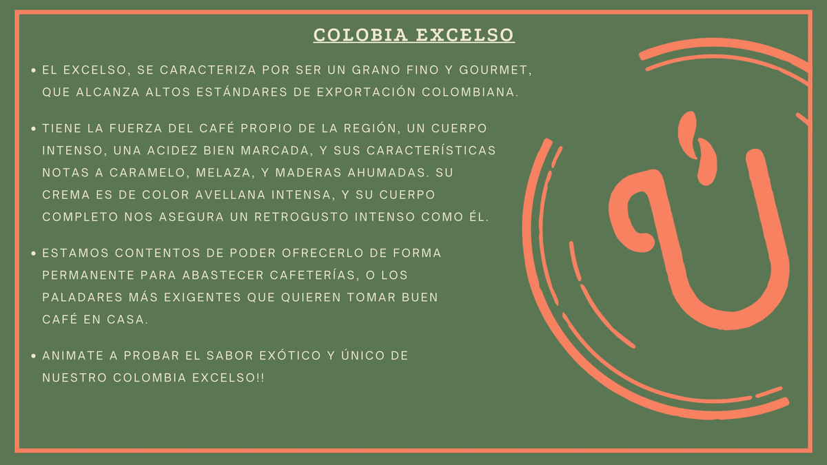 Descubrí el Colombia Excelso, un café fino y gourmet que refleja lo mejor de Antioquia, Colombia. Este grano de alta calidad, con estándares de exportación reconocidos, ofrece un cuerpo intenso, una acidez equilibrada y notas inconfundibles de caramelo, melaza y madera ahumada.