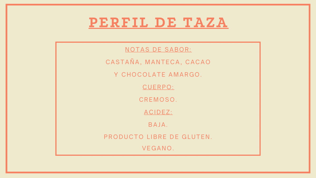 NOTAS DE SABOR: Castaña, manteca, cacao y chocolate amargo